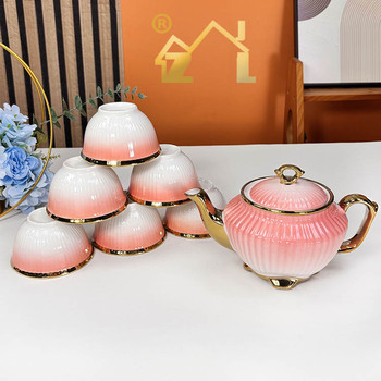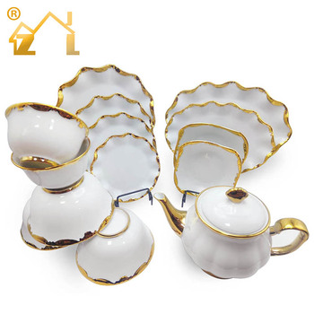 Productos principales:Juego de taza y platillo de té, Juego de tetera, juego de taza y platillo de café, vajilla dorada de porcelana, juego de platos chapados en oro