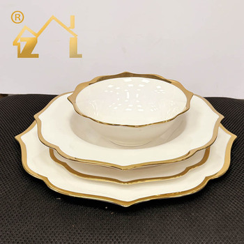 Venta al por mayor nuevo diseño 24 piezas de lujo de cerámica chapado en oro platos vajilla