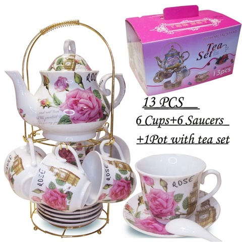 Juego de tazas de café y platillo de té, set de regalo con soporte dorado, 13 Uds., nuevo diseño, venta al por mayor