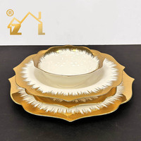 Venta al por mayor de lujo 62 piezas de porcelana chapada en oro platos juego de vajilla