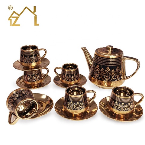 Productos principales:Juego de taza y platillo de té, Juego de tetera, juego de taza y platillo de café, vajilla dorada de porcelana, juego de platos chapados en oro