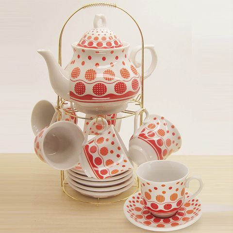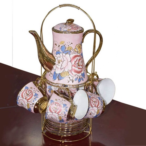 Оптовая продажа, новый дизайн, 13 шт., чайники, кофейная чашка и блюдце, подарочный набор с золотой подставкой