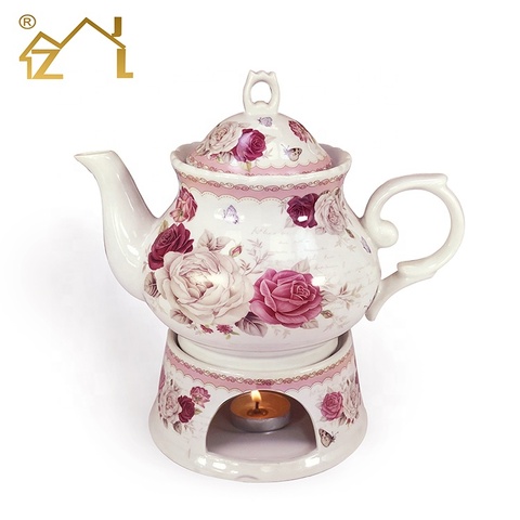 Juego de tetera de porcelana con diseño de flores de estilo europeo, conjunto de calentador